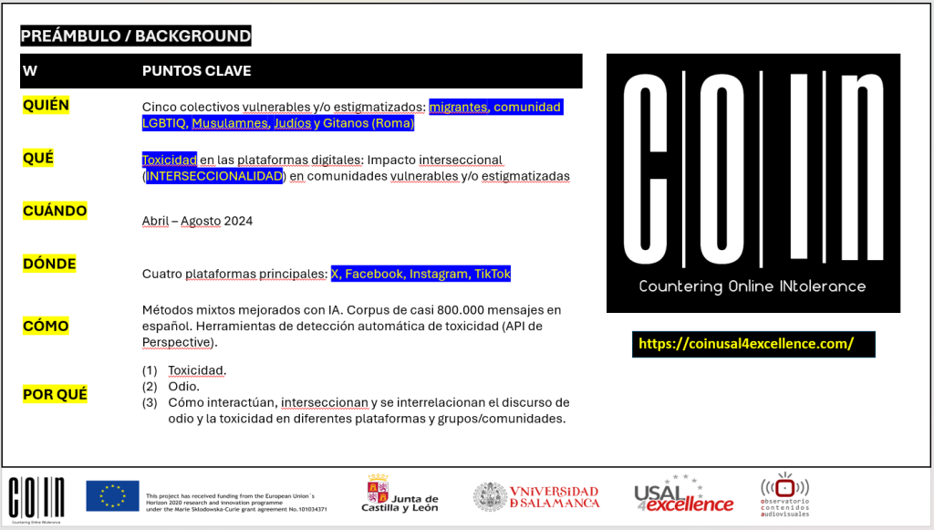 The online session was led by Dr. Martín Oller Alonso (Marie Skłodowska-Curie fellow, University of Salamanca) and formed part of the activities of the COIN project – Countering Online Intolerance against especially vulnerable groups.